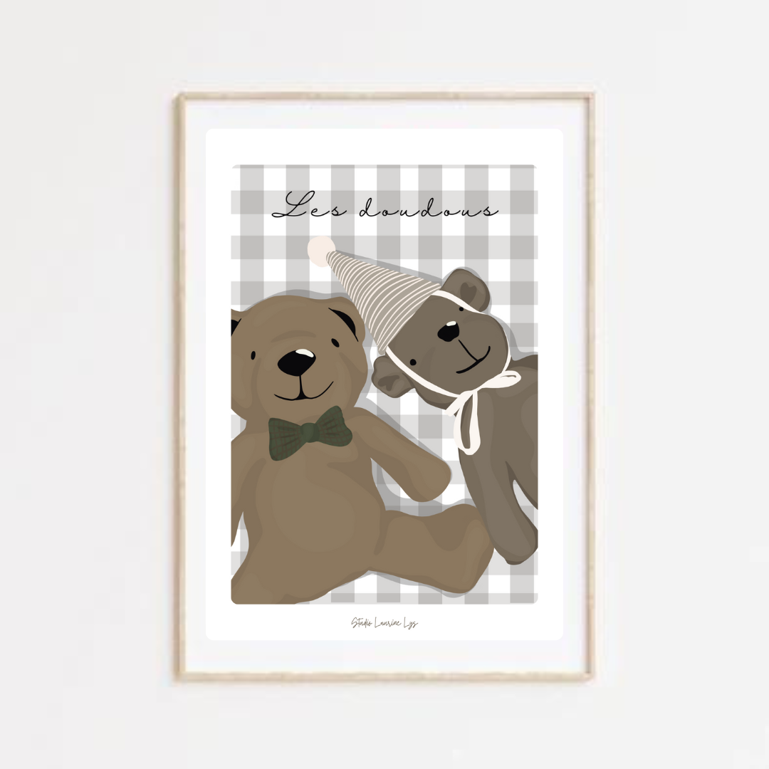 Ajoutez une touche de tendresse à votre espace avec l'affiche « Les Doudous ».