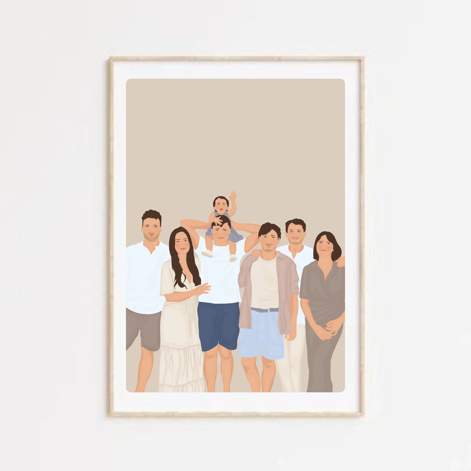 Illustration personnalisée détaillée = Avec détails du visage : yeux,nez,bouche. Vêtements détaillés, fond uni.
