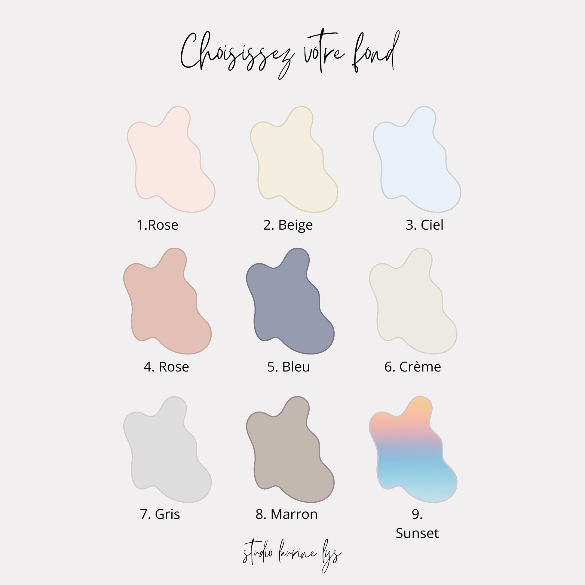 Pour toutes demandes spécifiques, n’hésitez pas a me contacter via mail contact@studiolaurinelys.com, Instagram @studiolaurinelys ou via le formulaire de contact de la boutique.